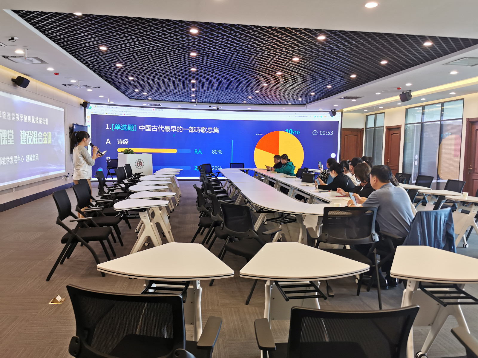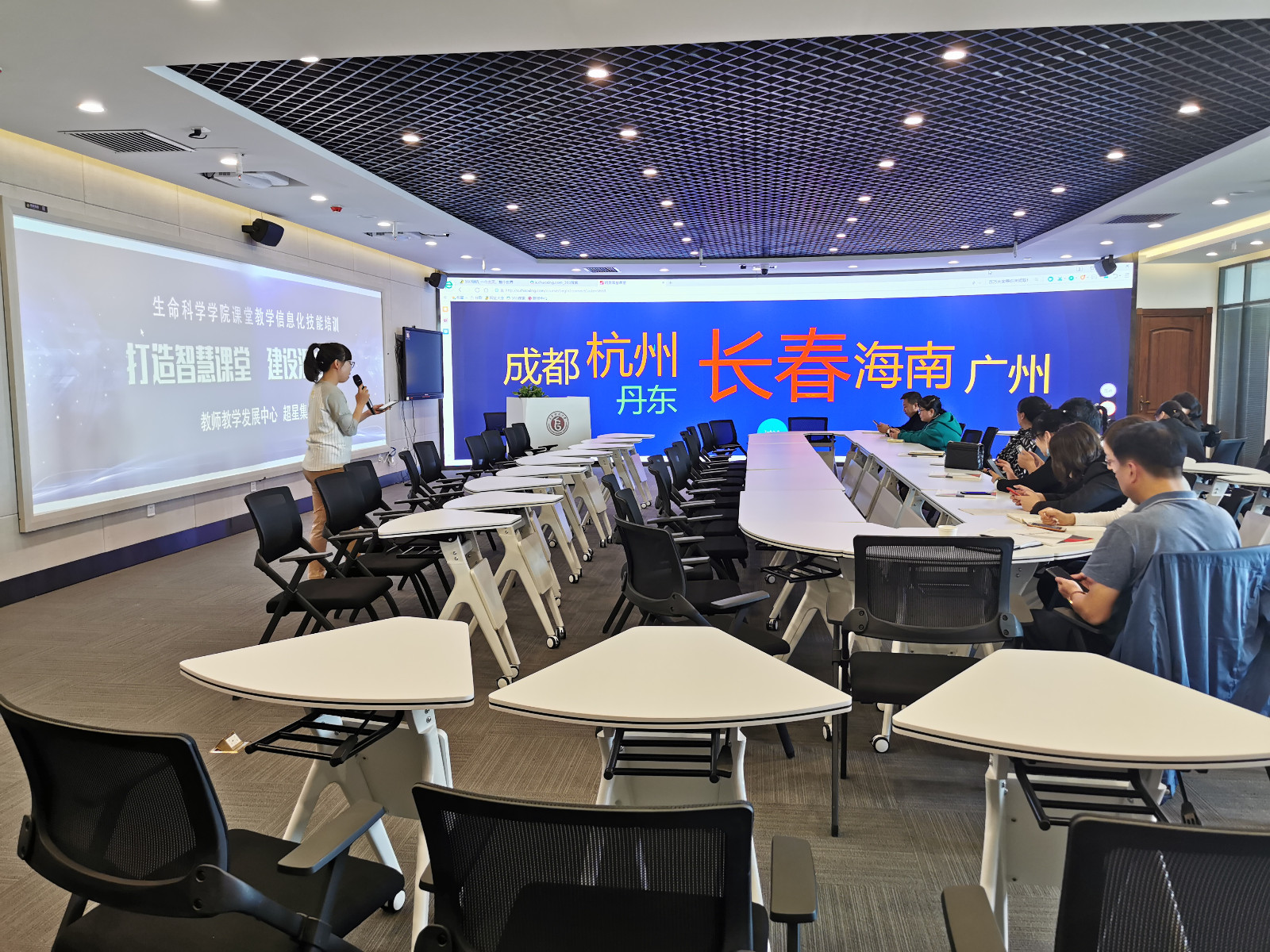 信息化背景下的高校教育,不应拘泥于传统课堂。很多老师有想法,没经验。为了信息化教学更好的落地,教师教学发展中心携手超星集团对各分院进行了系统化的培训。根据各学院教师的实际情况,组织了第一轮定义为“初识智慧教育”的培训。让老师们认识学习通,了解学习通,使用学习通。